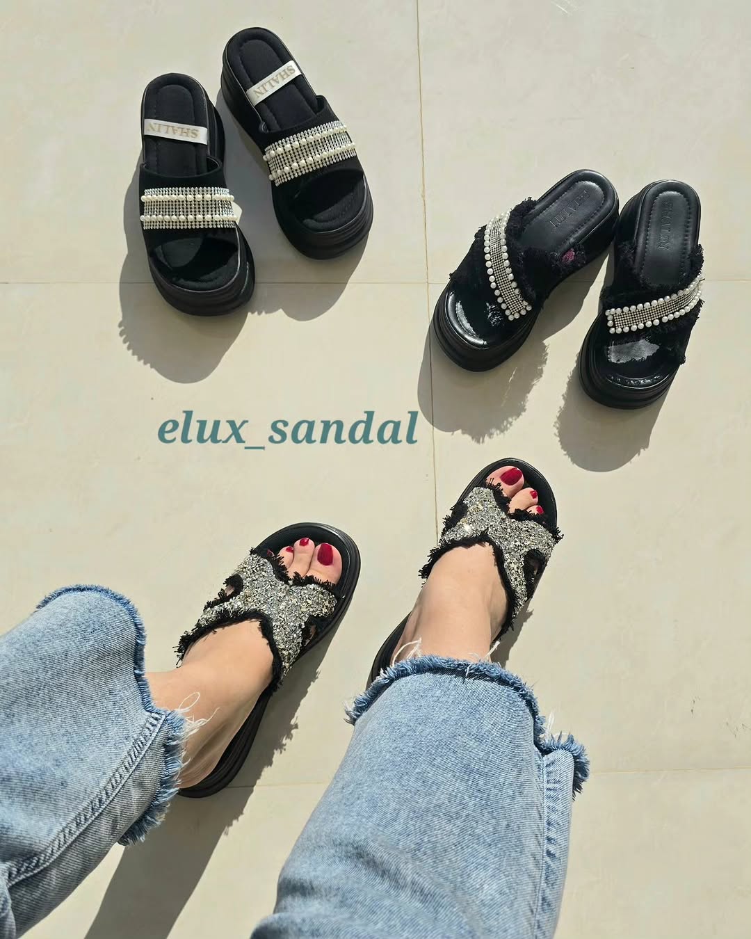 صندل لژدار جذاب مدل درنا نگین دار برند مینا سایز: ۳۷_۴۰